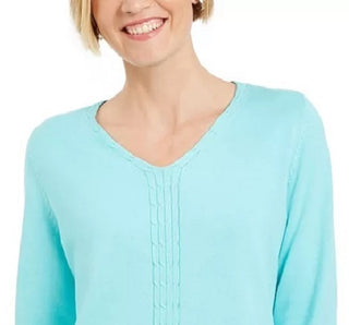 Karen Scott Women's Cotton Cable-Knit Sweater Blue Size Large
