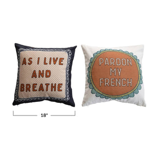 Creative Co-Op - Embroidered Printed Pillow With Saying