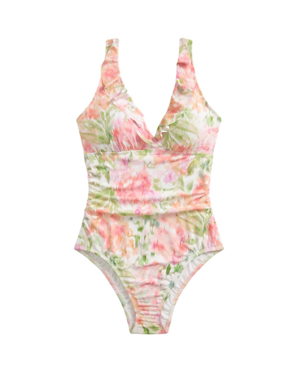 Designed to perfection and fit to flatter. You are going to love this one piece swimsuit. This one-piece swimsuit boasts a charming ruffle surplice tank design with a V-neckline and removable cups for added support. The summer floral print adds a playful touch, while the ruffle-trimmed V-neck and scoopback create a flattering silhouette. Designed with high-cut thighs and full seat coverage, this suit provides full coverage for confidence in the water. The pull-on construction and fully lined interior ensure a comfortable fit. Made from a blend of 83% nylon and 17% elastane, with a 100% polyester lining, this swimsuit is easy to care for with hand washing recommended.