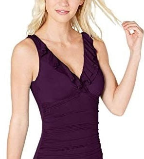Ralph Lauren Women's Beach Club Solid Ruffle Surplice One Piece Purple Size 16