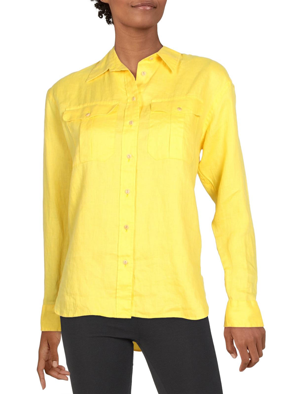 Womens Button-Down Top|Linen|Side Slit Shirt