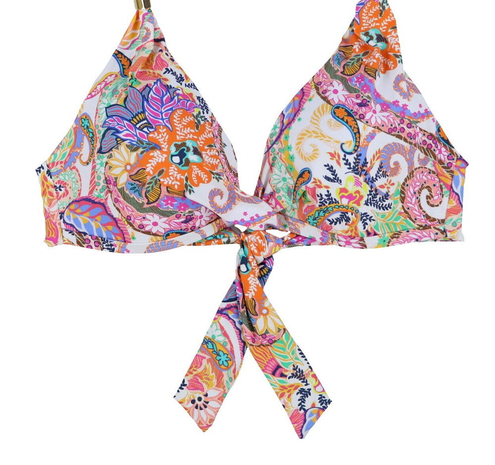 Ralph Lauren Women's Print Paisley Majestic Molded-Cup Twist Halter Swim Top White Size 10