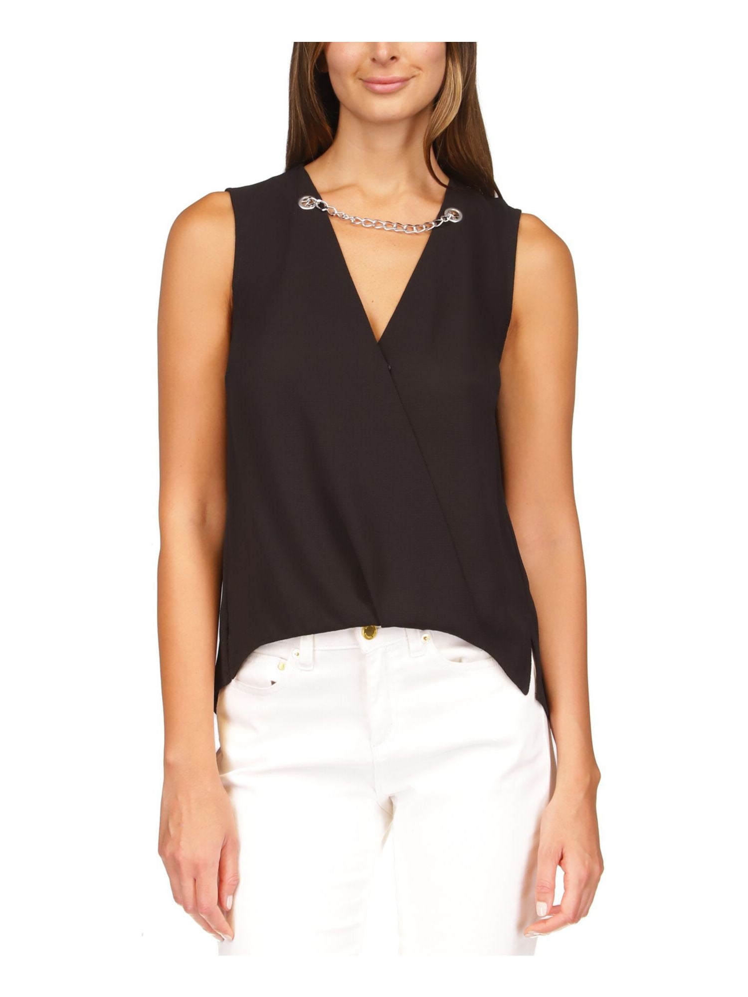 Michael Kors|Style; Top|Occasion; Casual|Size; XS|Material; Polyester|Color; Black|Surplice Neckline