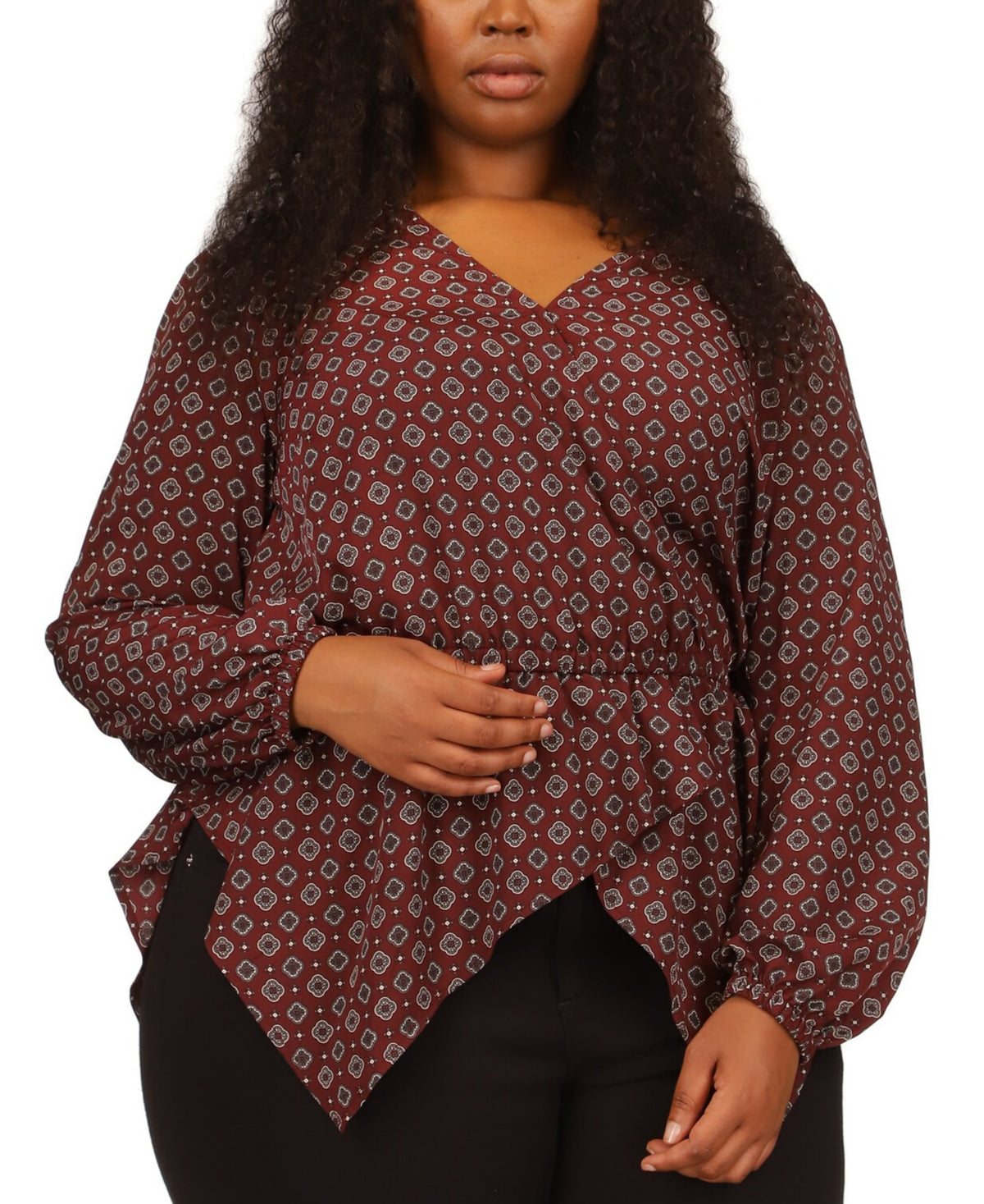 A sophisticated print elevates your look with this plus size pebble-crepe top from Michael Kors