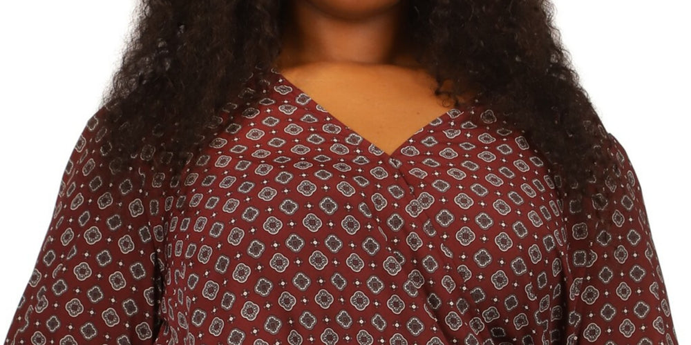 Michael Kors Women's Printed Foulard Faux Wrap Top Red Size 1X