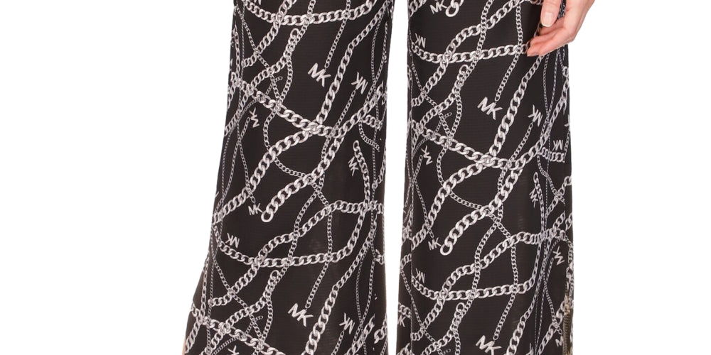 Michael Kors Women's Solid And Chain Print High Slit Pull On Pants Black Size Petite X-Small