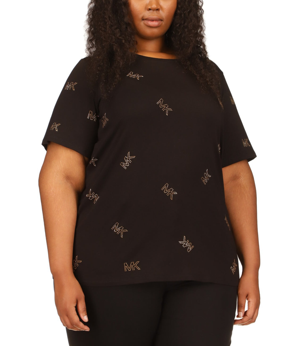 Scattered studded logos shine on this plus size short-sleeve T-shirt from Michael Kors