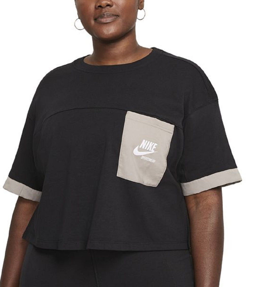 Roll back the clock for a retro look in this heritage-inspired plus size cotton pocket tee from . | Crewneck; woven patch pocket at chest; woven contrast cuffs| 100% cotton| Machine washable| Imported