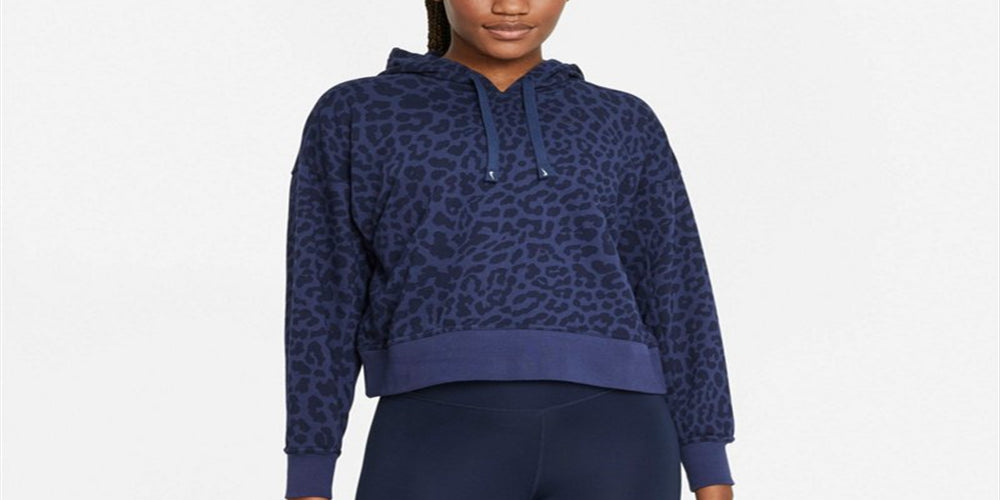 Nike Women's Dri FIT Get Fit Pullover Printed Training Hoodie Blue Size Large