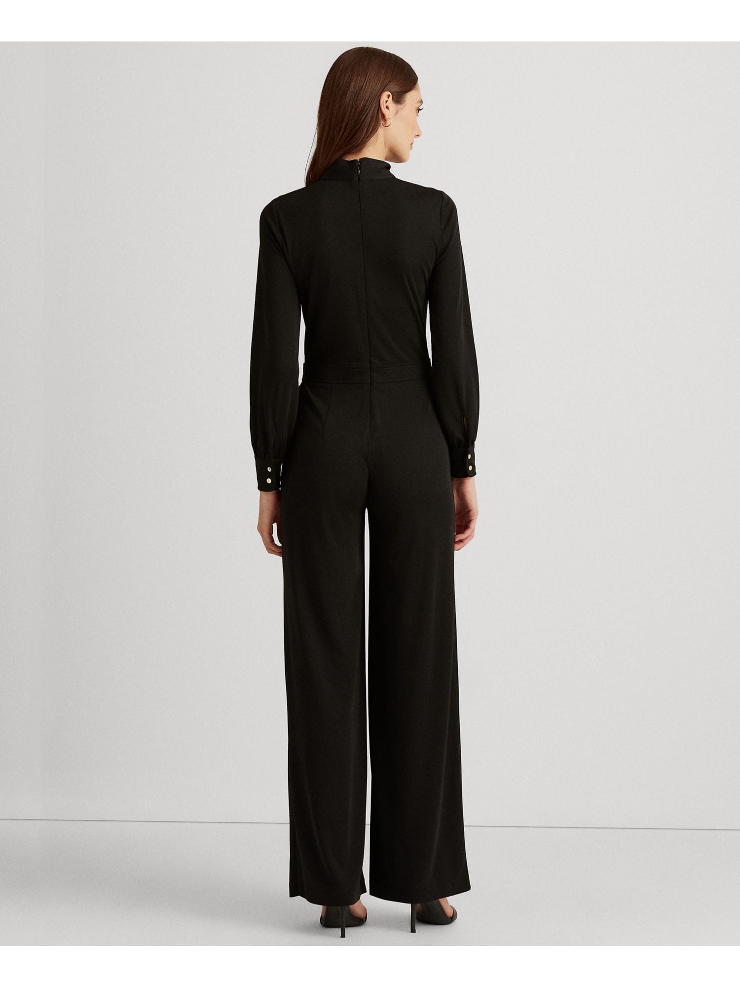 RALPH LAUREN|Style; Jumpsuit|Occasion; Party|Size; 2|Material; Polyester|Color; Black|Tie Neck