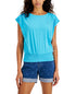Tommy Hilfiger Women's Solid Smocked Waist Top Blue Size Large