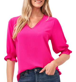 CeCe Women's Ruffle V Neck Blouse Pink Size Large