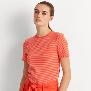 Ralph Lauren Women's Striped Stretch Cotton T-Shirt Orange Size Medium