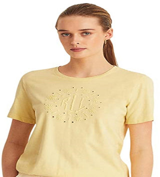 Ralph Lauren Women's Eyelet Logo Jersey Tee Yellow Size X Large