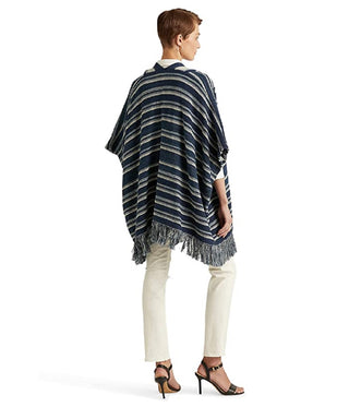 Ralph Lauren Women's Striped Cotton Fringe Trim Cardigan Blue Size Small