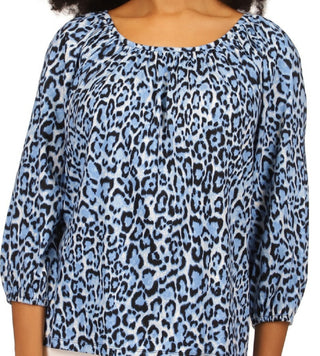 Michael Kors Women's Wildcat Print Peasant Top Blue Size Medium