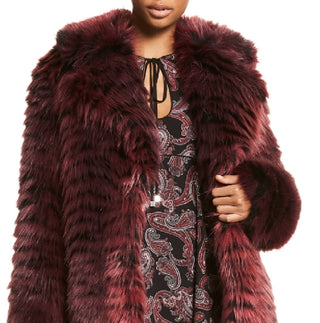 Michael Kors Women's Animal Print Faux Fur Coat Red Size Small