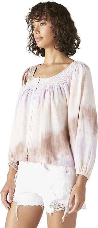 Lucky Brand Women's Embroidered Peasant Blouse Purple Size Medium