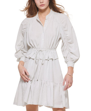 Calvin Klein Women's Tie Waist Ruched Sleeve Shirtdress White Size X-Large