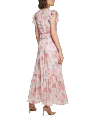 Calvin Klein Women's Floral Print Smocked Waist Tiered Maxi Dress Pink Size 16