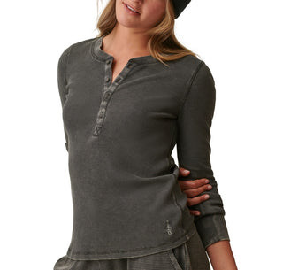 Bass Outdoor Women's Warm Button Front Waffle Knit Henley Top Green