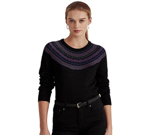 Ralph Lauren Women's Fair Isle Cotton Blend Sweater Black Size Small