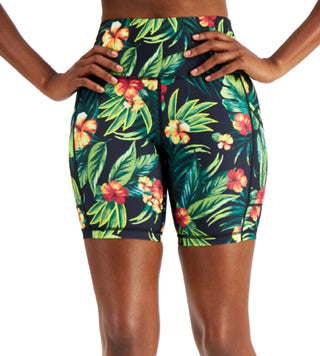ID Ideology Women's Compression Tropical Print 7 Bike Shorts Black Size Large