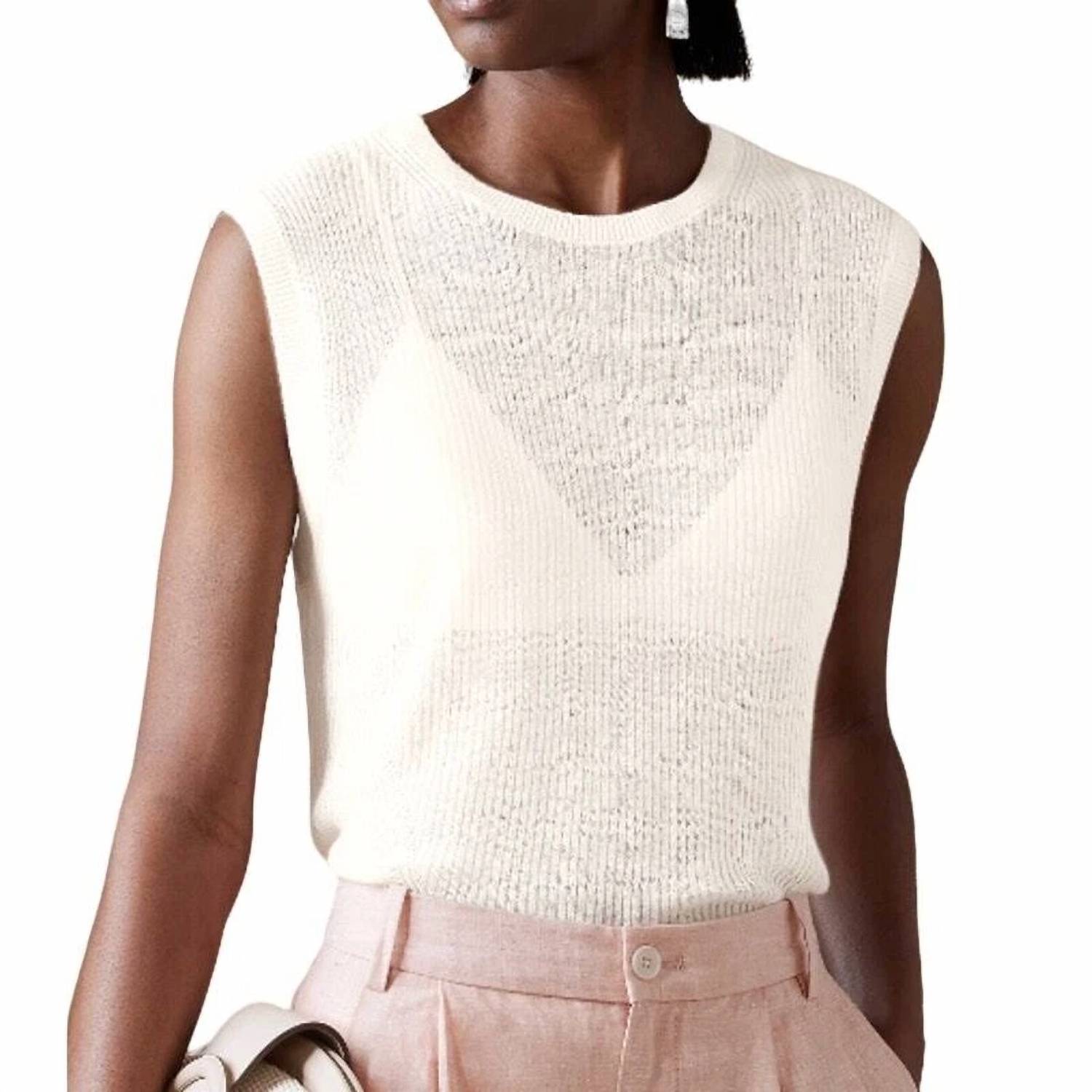 This classic tank top is perfect for layering and cute enough to wear on its own. Introducing the Eliza Linen Blend Muscle Tank by Banana Republic. This sleeveless tank is crafted from a luxurious linen blend, ensuring a smooth hand feel and a naturally cool experience. It features a crewneck and pull-on closure, embodying a relaxed fit perfect for casual outings. Care for this solid-patterned tank is easy with its machine wash instructions.
