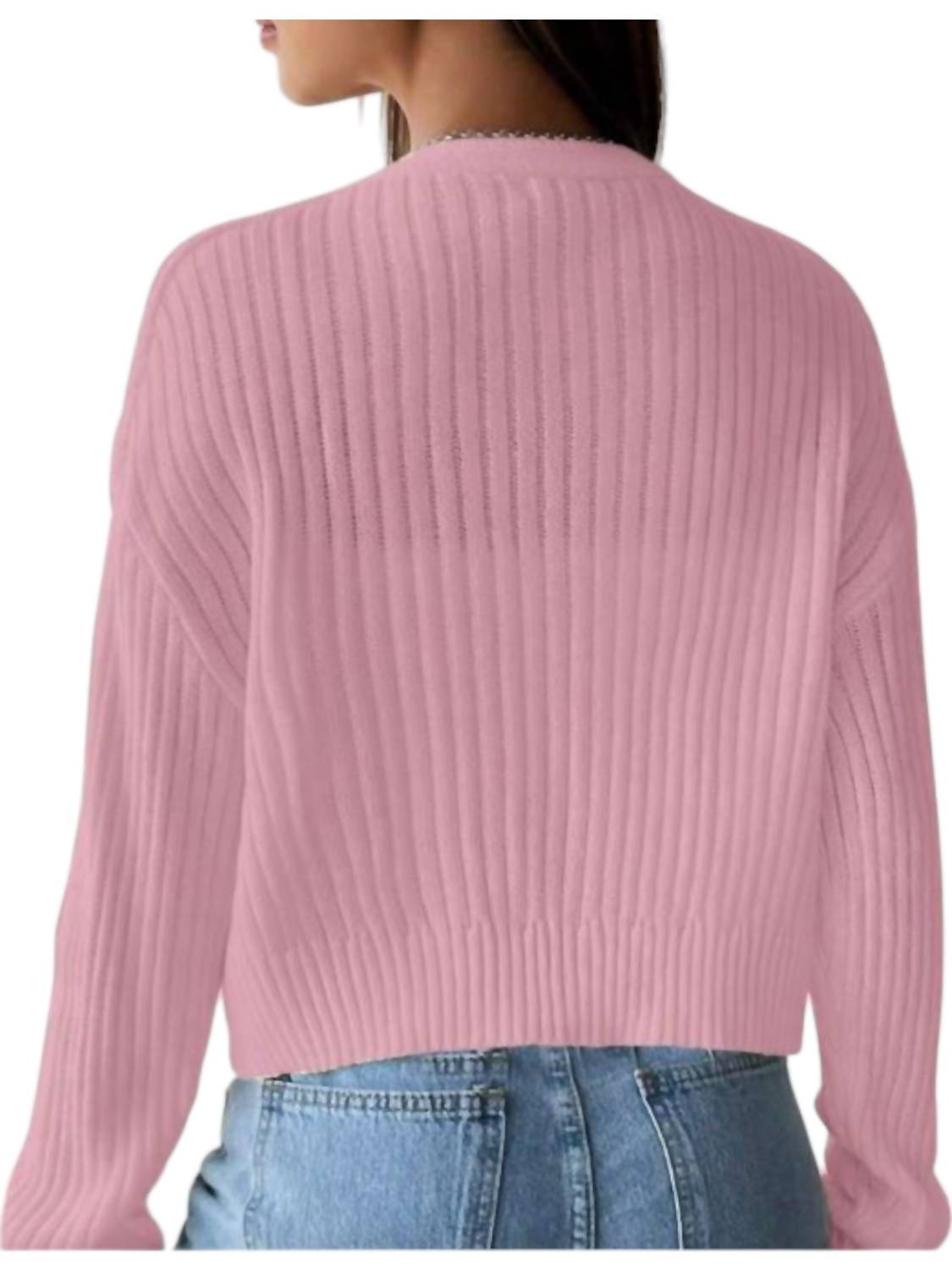 Wear this v-neck sweater with your favorite denim for the perfect fall look. Introducing the Noah Ribbed Sweater by BuddyLove, a chic option in a delightful pink hue perfect for countless occasions. This textured V-neck features long sleeves and a slightly cropped length, measuring 21 inches from shoulder to hem when in size small. Made from cotton, it offers a relaxed fit with a button closure for effortless styling. Model Paige wears a size small and stands at 5'7" with a bust of 32 inches, a waist of 25 inches, and hips of 34 inches.