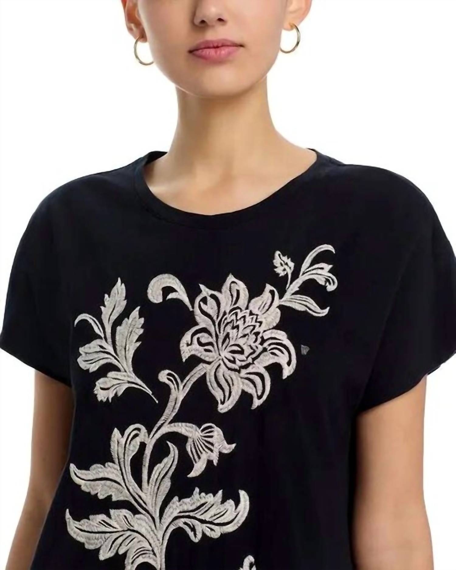 Just add slides or mules and you are good to go. Knit dress features short sleeves and embroidery.