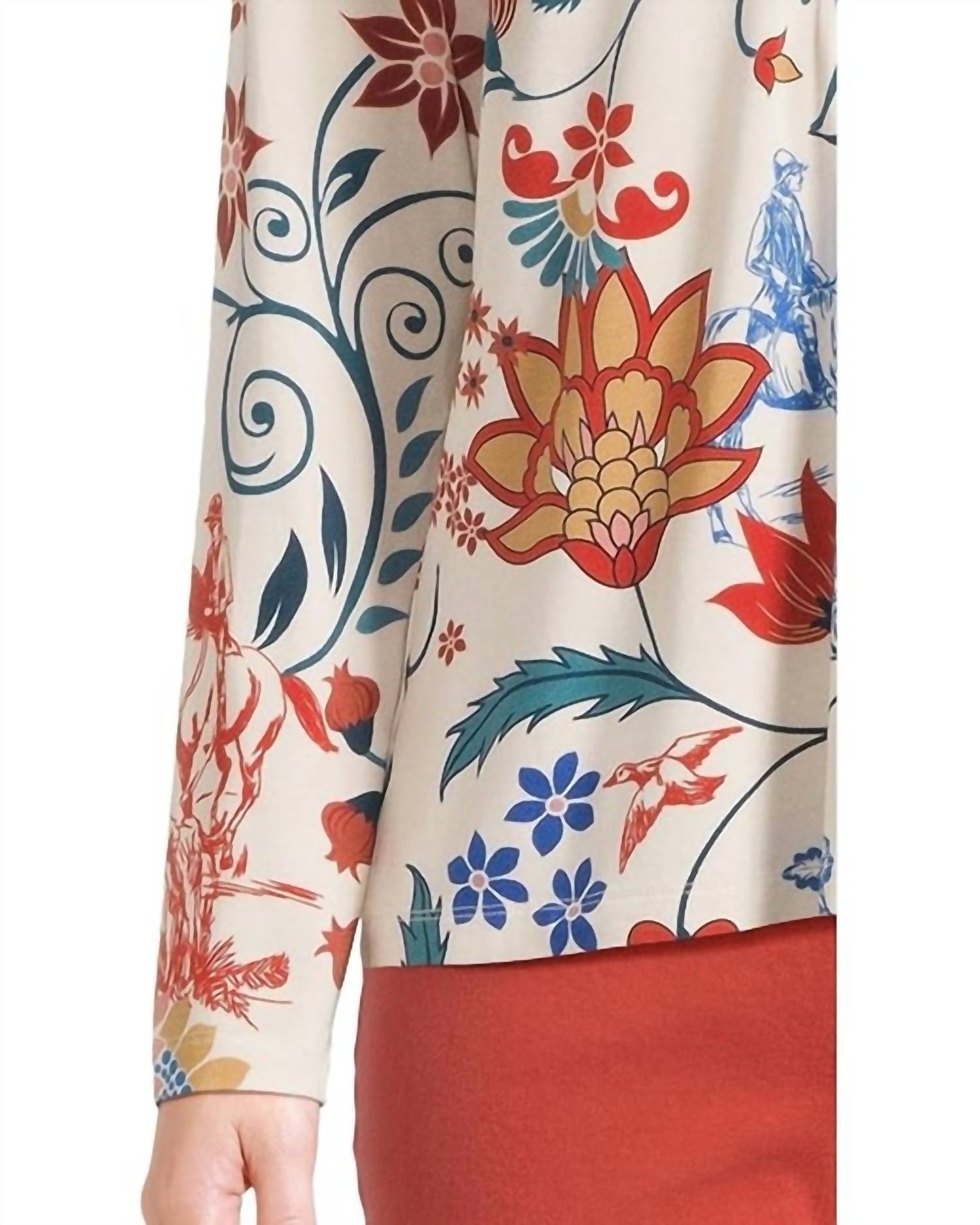 Great fit, cute design, soft fabric. You'll love everything about this long sleeve tee. Featuring an all-over geometric print, the Johnny Was® The Janie Favorite Long Sleeve Button Henley top is crafted from a unique fabric blend with a touch of stretch. An everyday style essential, this printed shirt comes with a two-button front placket that offers easy wear. The long sleeves, Henley neckline, and straight hem add to its style. Embodying relaxed comfort and elevated style, this fashion tee is essential. 95% Rayon, 5% Spandex Machine Wash
