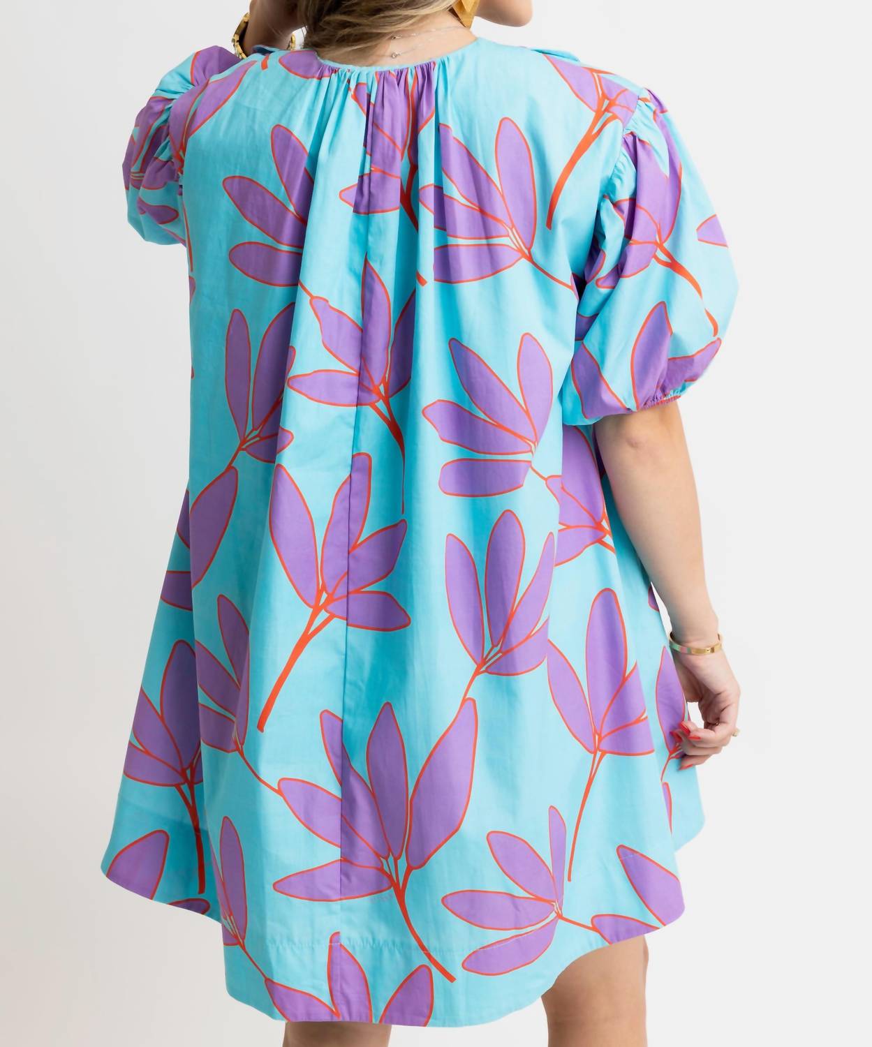 Step into summer with the Women's Abstract Leaf Scallop Dress by Karlie, a vibrant turquoise piece perfect for vacation vibes. This A-line mini dress boasts short sleeves and a stylish V-neck, finished with a maximalist abstract floral pattern. Designed for a seamless look, the dress features a convenient side zipper closure. Embrace effortless elegance with a dress tailored for any sunlit occasion.