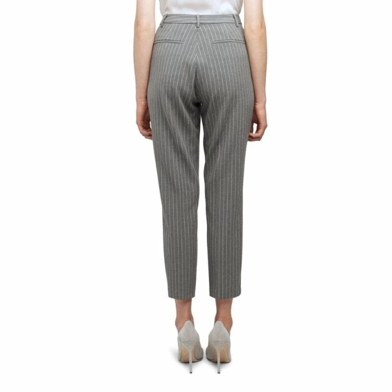 Elevate your workwear wardrobe with the Ludivine Stripe Crop Trousers by L'Agence, tailored for a refined silhouette. These gray trousers feature a sleek zip fly with a hook-and-bar closure, and boast front slant and back welt pockets for practicality. Crafted from a blend of 63% polyester, 34% rayon, and 3% spandex, they promise comfort with a hint of stretch. Machine wash for easy maintenance.
