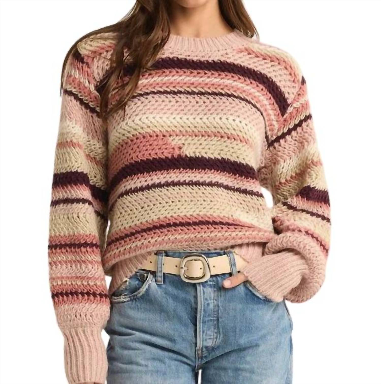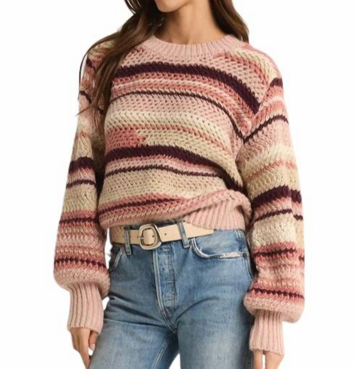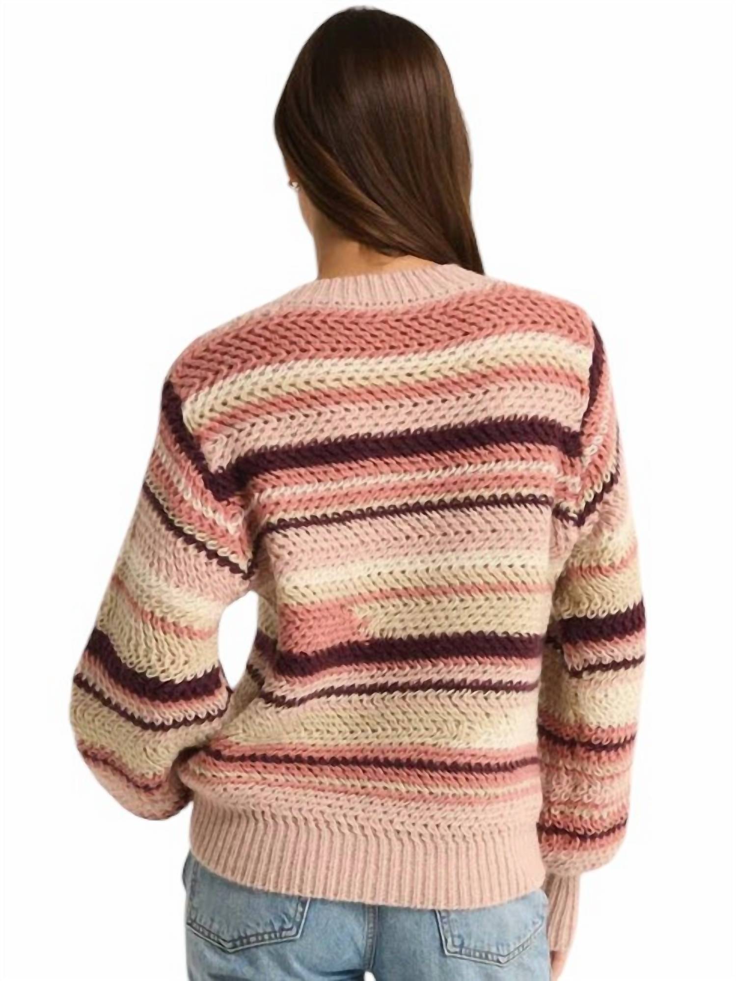 Stay warm and stylish in this versatile and effortlessly cool knitwear staple. Wear it alone or layered, it's the perfect sweater for the season and you'll wish you had it in every color. Introducing the Asheville Sweater by Z Supply, your new go-to for chilly evenings or breezy office days. This long-sleeve, midweight sweater features a colorful stripe pattern that effortlessly elevates your style. Composition: 100% Polyester. Sleeve Length: Elbow Sleeve. Material: Soft tape yarn. Closure Type: Pull-on. Enjoy a cozy crew neck and chunky knit design with a roomy fit, hitting below the waistband and styled with blousant sleeves and fitted cuffs.