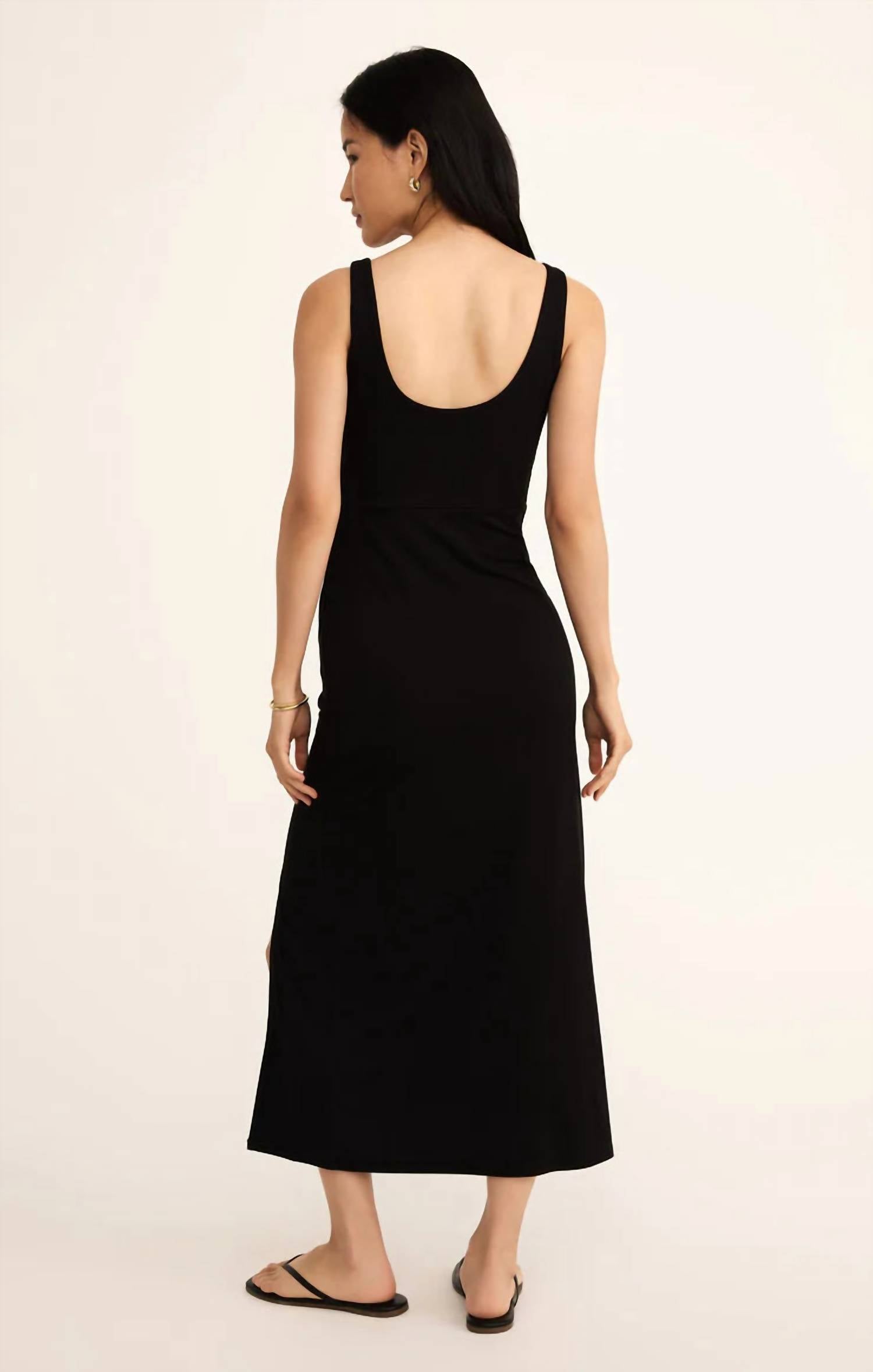 A midi dress so versatile, your options for wearing it are endless. Discover the Valencia Midi Dress by Z Supply, tailored for a sleek and sophisticated silhouette in classic black. This sleeveless sheath dress features wide, bra-friendly straps and a crew neckline, crafted from a comfortable blend of 90% Rayon and 10% Spandex. Designed with a flirty mid-thigh slit, it ensures a flattering fit with its stretchy, lightweight material. Closure: Pull-on. Care: Machine wash cold on a gentle cycle, lay flat to dry.