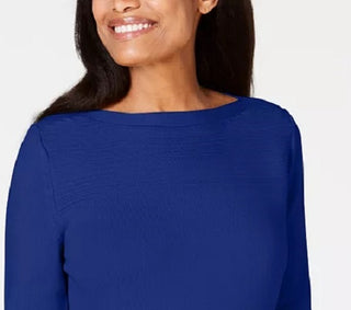 Karen Scott Women's Cotton Boat-Neck Sweater Blue Size X-Large