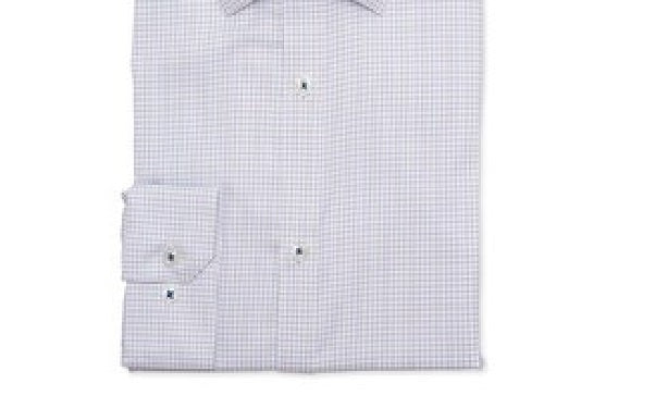 A slim fit is cut closer through the chest, sleeves and waist; features slim armholes and sleeves|Non-iron|Spread collar with Comfort™ Collar Technology expands up to 1/2"|Adjustable two-button cuffs|Square dobby pattern|Stretch performance; wicking fabric helps evaporate moisture