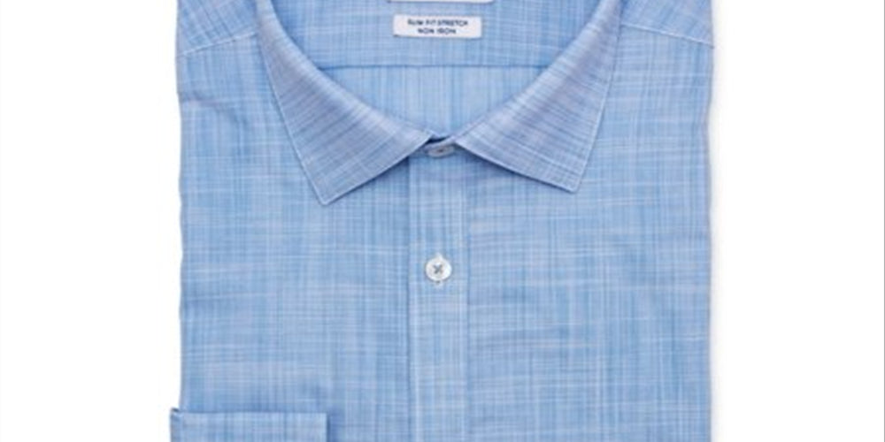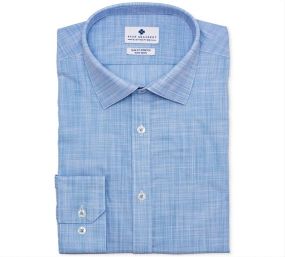 Ryan Seacrest Mens Dress Shirt Slim Stretch Non-Iron Blue 18