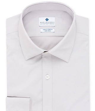 Ryan Seacrest Distinction Men's Ultimate Active Slim Fit Non Iron Performance Stretch Solid Dress Shirt Grey Size 34-35