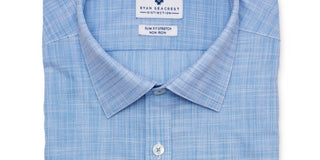 Ryan Seacrest Distinction Men's Ultimate Slim Fit Non Iron Performance Stretch Dress Shirt Blue Size 17X36-37