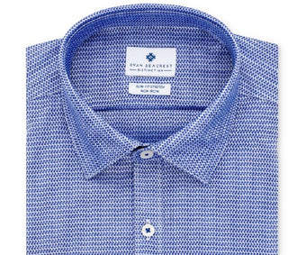 Ryan Seacrest Distinction Men's Ultimate Slim Fit Non Iron Performance Stretch Pattern Dress Shirt Blue Size L