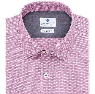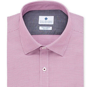 Ryan Seacrest Distinction Men's Ultimate Slim Fit Non Iron Performance Stretch Dobby Check Dress Shirt Pink Size 15.5X32-33