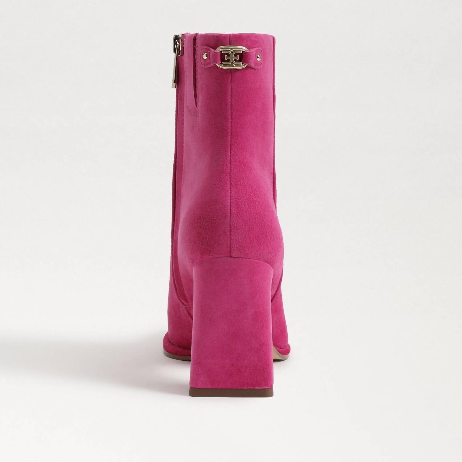 Not your average ankle bootie—Irie gives the perennial favorite bootie a fresh look with an angular square-toe and slim block heel. Heel Height: 3.1 inches Toe: Rounded Toe Closure: Zipper Boot Shaft: 4.9 inches Calf Circumference: 9.8 inches Material: Leather Insole: Synthetic