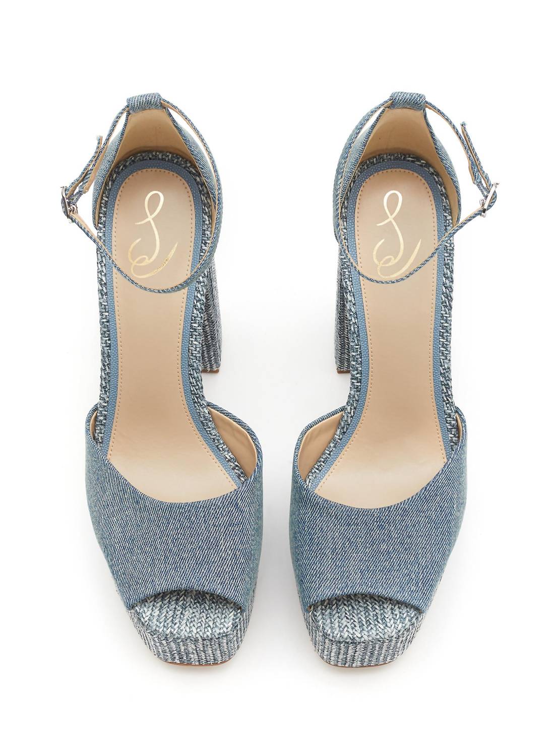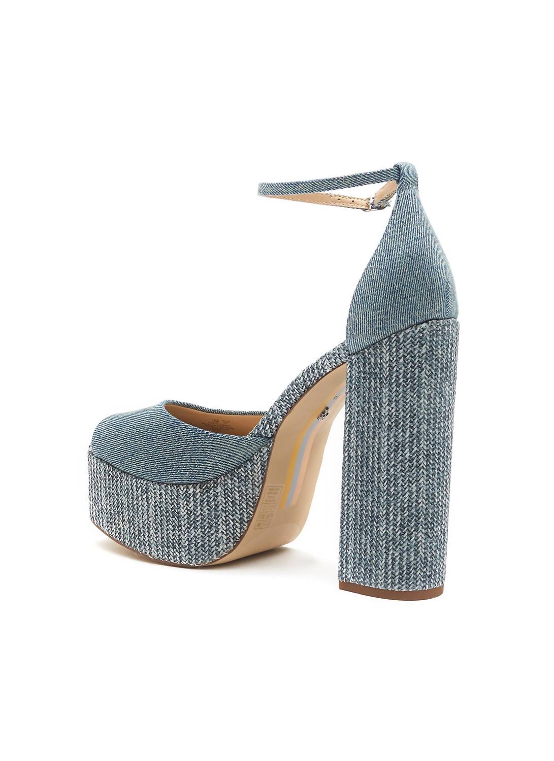 Add a little height with the perfect platform. Demin fabric upper. Adjustable buckle closure. Synthetic lining. Rubber outsole. Approx. 1.7" platform height. Approx. 5.5" block heel height.