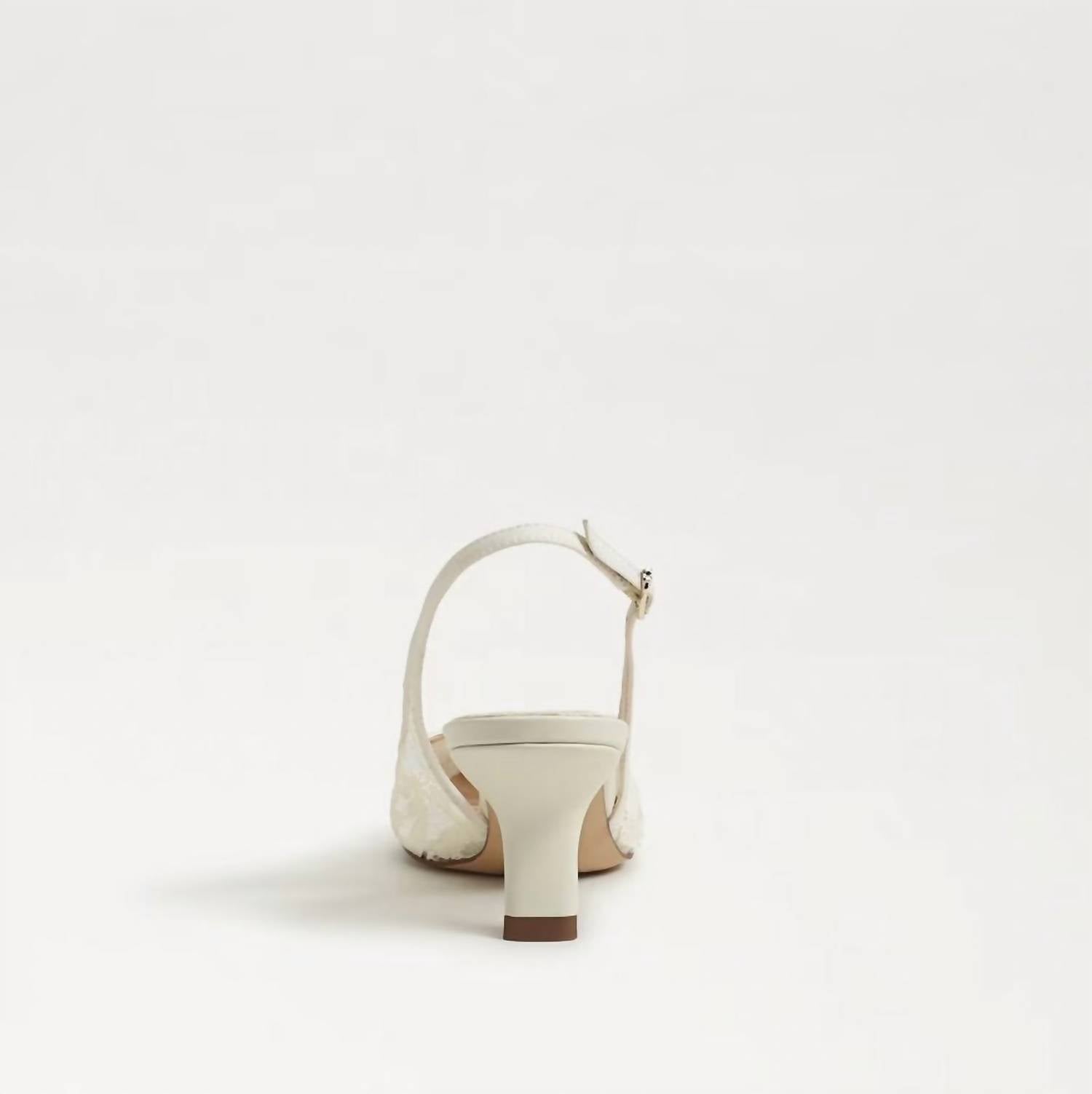 Pair these beauties with your favorite skinny jeans or dress for a night out on the town. Meet the Women's Bianka Slingback Pump by Sam Edelman, a chic addition to your summer wardrobe. Featuring a pointed toe design and a comfortable 2.4-inch kitten heel, these pumps provide sleek lines in elegant Ivory Lace. Crafted from a mix of leather, fabric, and synthetic materials, these shoes include a synthetic insole with a cruelty-free and ethically sourced upper lining and sock lining. Closure is via a classic buckle, making it perfect for any dinner party or special occasion.
