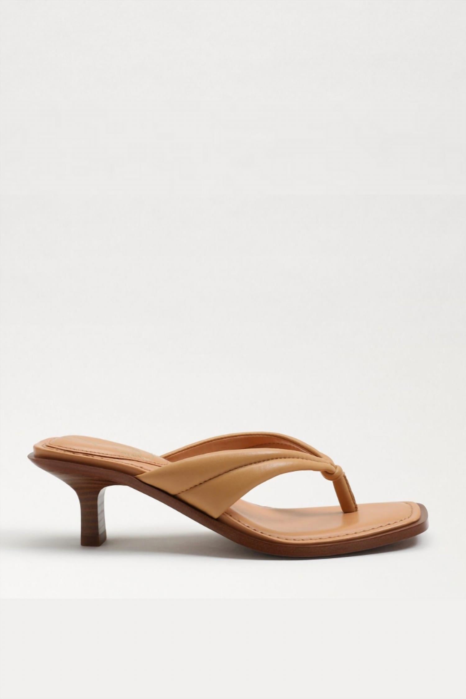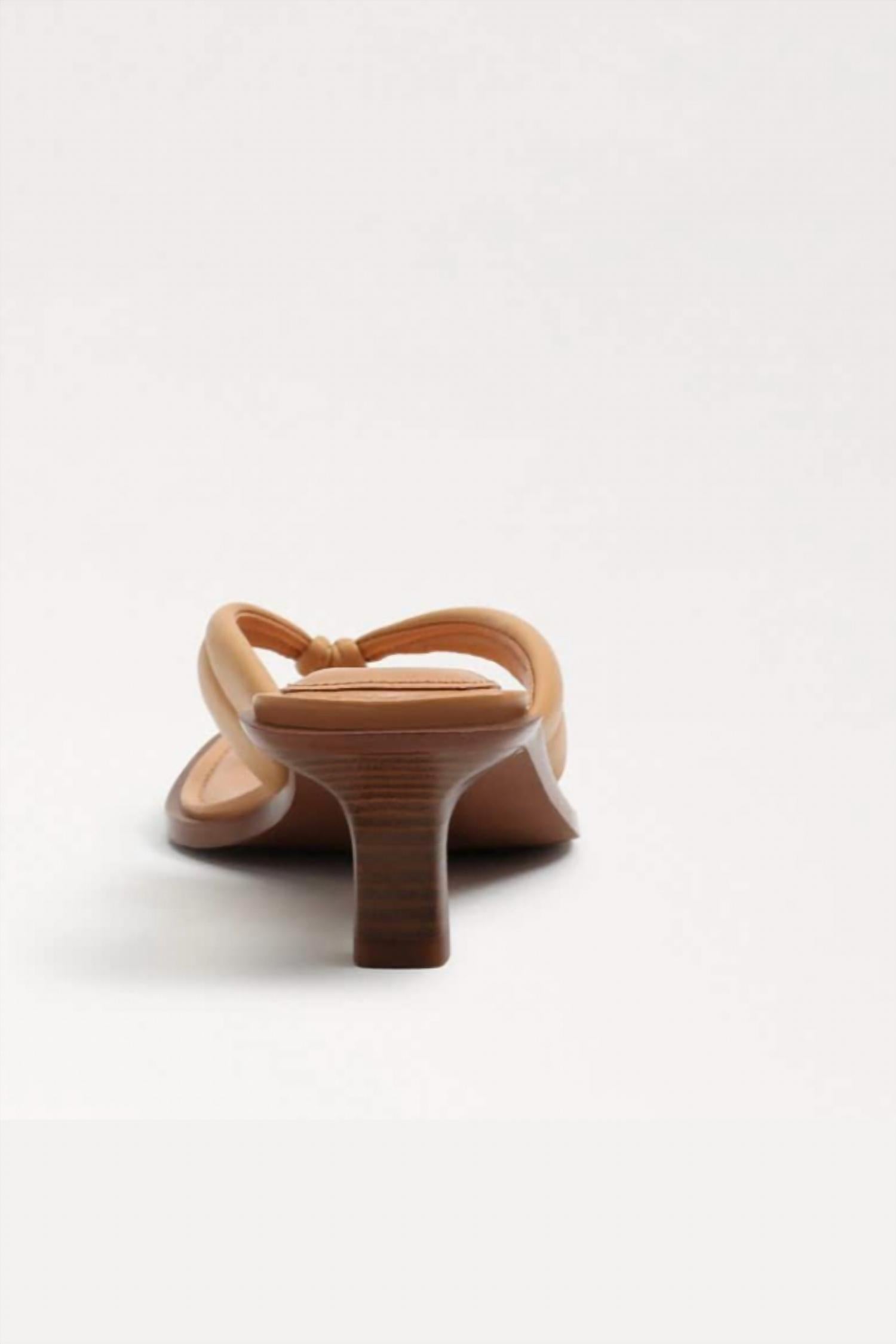 With a bold thong strap and always comfortable kitten heel. Slip on. Material: Leather. Insole: Synthetic. Heel Height: 2".