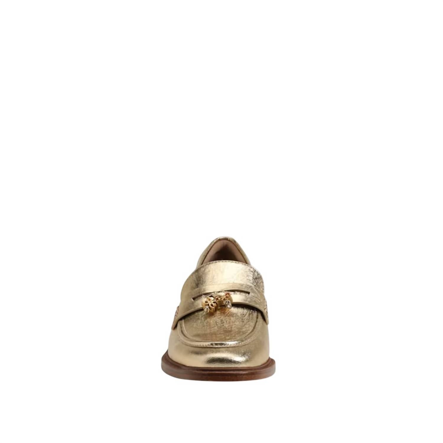 Loafers so versatile you can wear them with just about anything. Experience the sophisticated elegance of the Women's Denise Tassel Penny Loafer by Sam Edelman, tailored expertly for the modern wardrobe. These loafers are made from luxurious gold leather, offering a timeless appeal and a sleek slip-on design. Featuring a classic penny strap and tassel detail on the vamp, they exemplify a chic and feminine style. With a 1-inch chunky heel and round toe shape, they provide comfort and style, making them a versatile choice for any ensemble.
