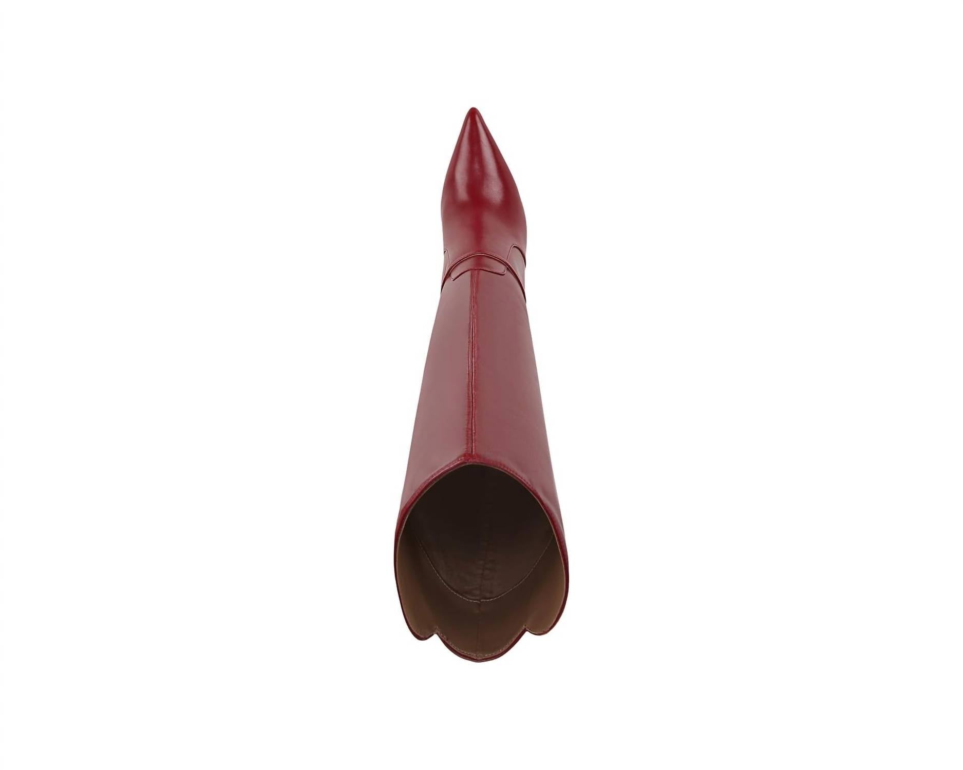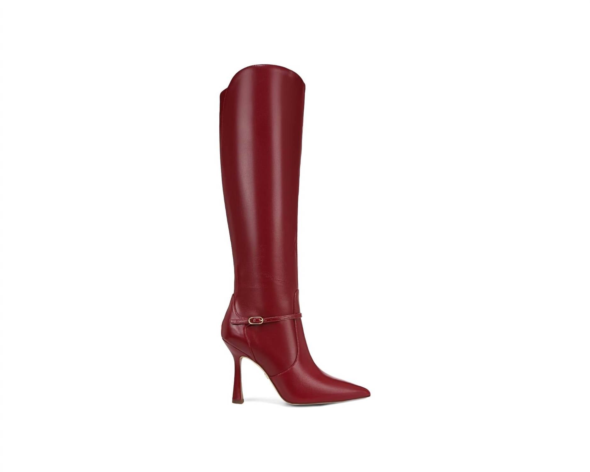 A stylish boot with a comfortable fit and the perfect amount of height. These classic boots are the perfect addition to any outfit and can be worn season after season. Step confidently into any holiday party with the Women's Elia Pointed Toe Stiletto Heeled Over The Knee Boots by Sam Edelman. These stylish heeled boots in a rich cabernet red feature a 4-inch tapered heel and a pointed toe for an elongated look. Made from luxurious leather, they boast a boot shaft of 14.9 inches and a calf circumference of 14.1 inches, providing a sleek, flattering silhouette. Their striking design pairs perfectly with fall's chunky knits and textured pieces.