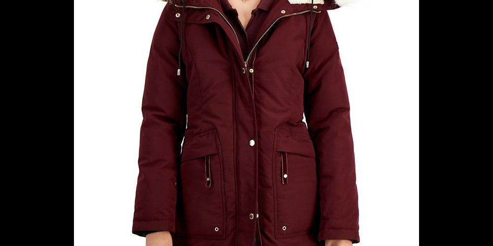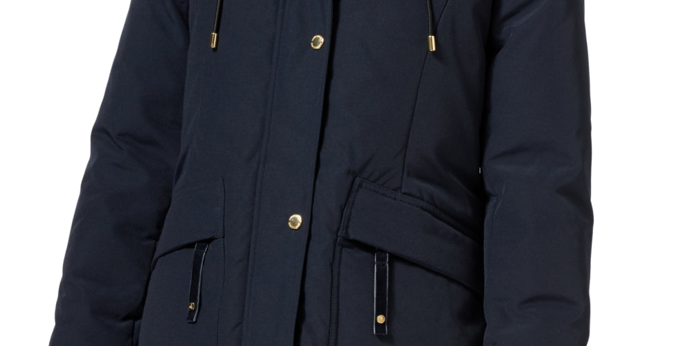 Sam Edelman Women's Faux Trim Hooded Down Parka Blue Size X-Small