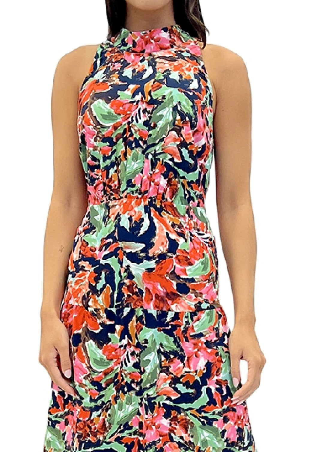 Brushstroked blooms lend a lovely landscape to a versatile midi dress designed to showcase your shoulders| 50 center front length (size 8) Halter neck Sleeveless| with cutaway shoulders Lined bodice 100% polyester Dry clean Imported